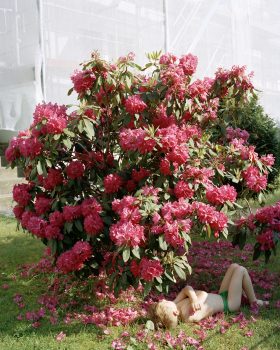 Die Zukunft – vielleicht sogar die Gegenwart? – von Dating und Partnerschaft in virtuellen Welten beschäftigt Laura Stromp in ihrer Arbeit „Origin“ . Als erzählerische Tableaus inszeniert die Fotografin Figuren in seltsam ungelenker Haltung an hochartifiziellen Orten. Obwohl physisch anwesend, scheinen die Personen – oder sind es Androiden – ihre Aufmerksamkeit ganz auf ihre Existenz in alternativen Realitäten zu konzentrieren. Viele von ihnen tragen Accessoires wie VR-Brille, Smartphone oder Selfiestick, die sie als mediale Nabelschnüre mit ihren Onlineprofilen und Avataren verbinden – oder ist es andersherum? Die Arbeit mit den Models, reale und virtuelle Locations, die Requisite, das Licht und die Post Production greifen perfekt ineinander, brechen mit unseren Sehgewohnheiten und lassen die Grenzen zwischen Wirklichkeit und Virtualität verschwimmen.