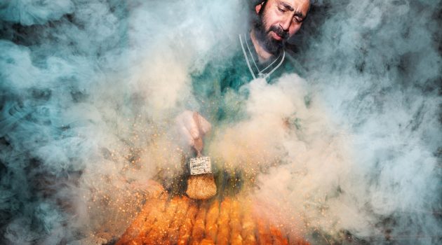Das Foto von Debdatta Chakraborty wurde auf dem Khayyam Chowk aufgenommen, einer gewöhnlichen indischen Straße in Srinagar, die sich nachts in ein lebhaftes Streetfood-Zentrum verwandelt, wenn die Verkäufer die Holzkohleöfen anheizen und die Luft mit dem rauchigen Aroma von gegrillten Köstlichkeiten wie Wazwan Kebabs, dem beliebten Straßenessen in Kaschmir, erfüllen.