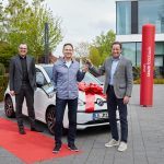 - Gewinner des CEWE FOTOBUCH Wettbewerbs 2021: Jochen Fisches (Mitte) mit CEWE Vorstand Thomas Mehls (li.) und Uwe Stöver vom Autohaus Braasch (re.) (Foto: CEWE)