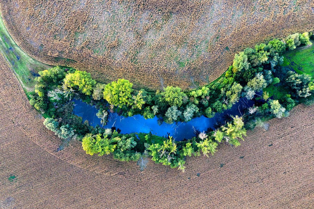 Der zweite Preis ging an den ungarischen Fotografen Peter Fodor für seine Luftaufnahme eines von Bibern gestalteten Wasserlaufs.