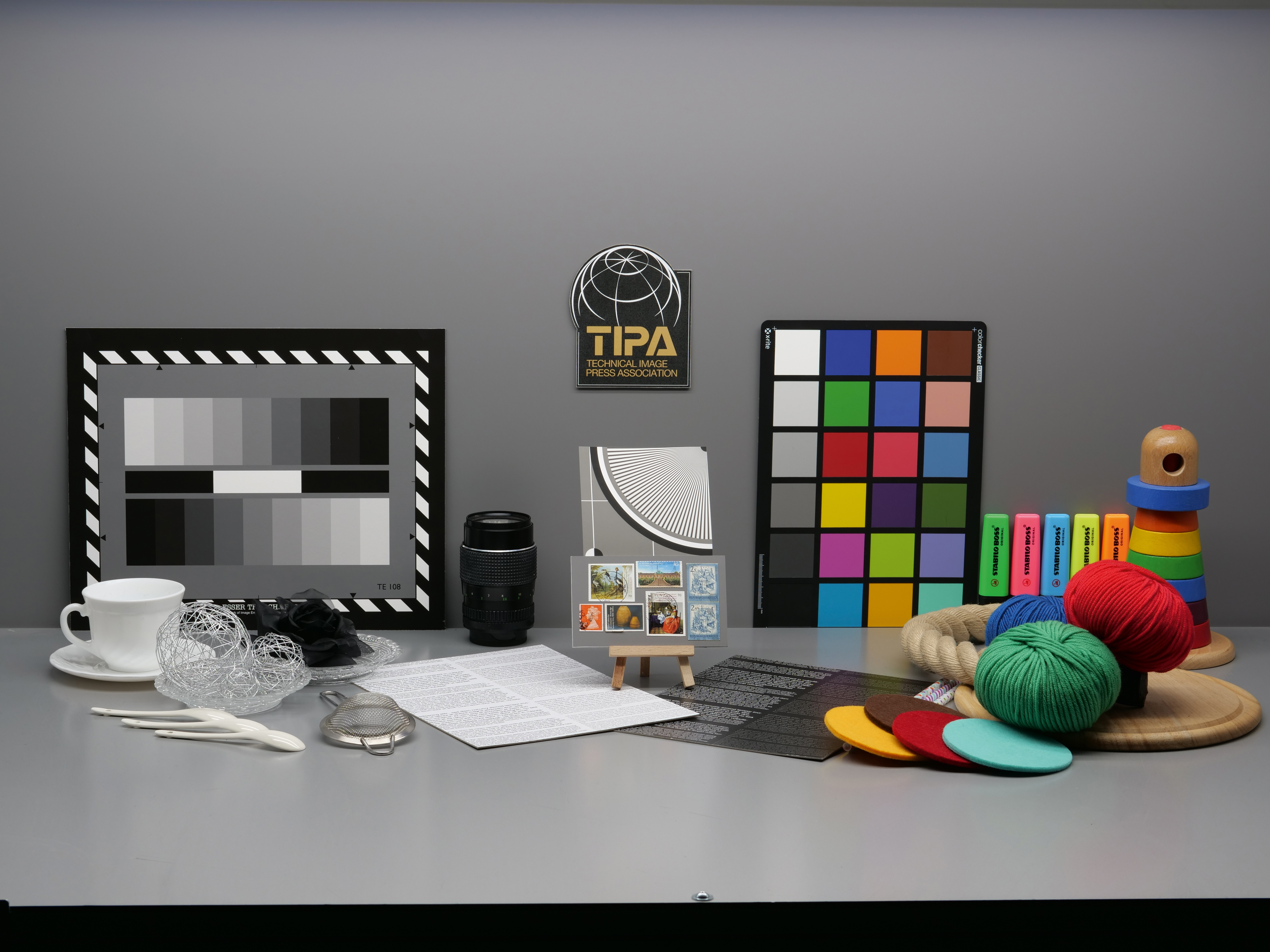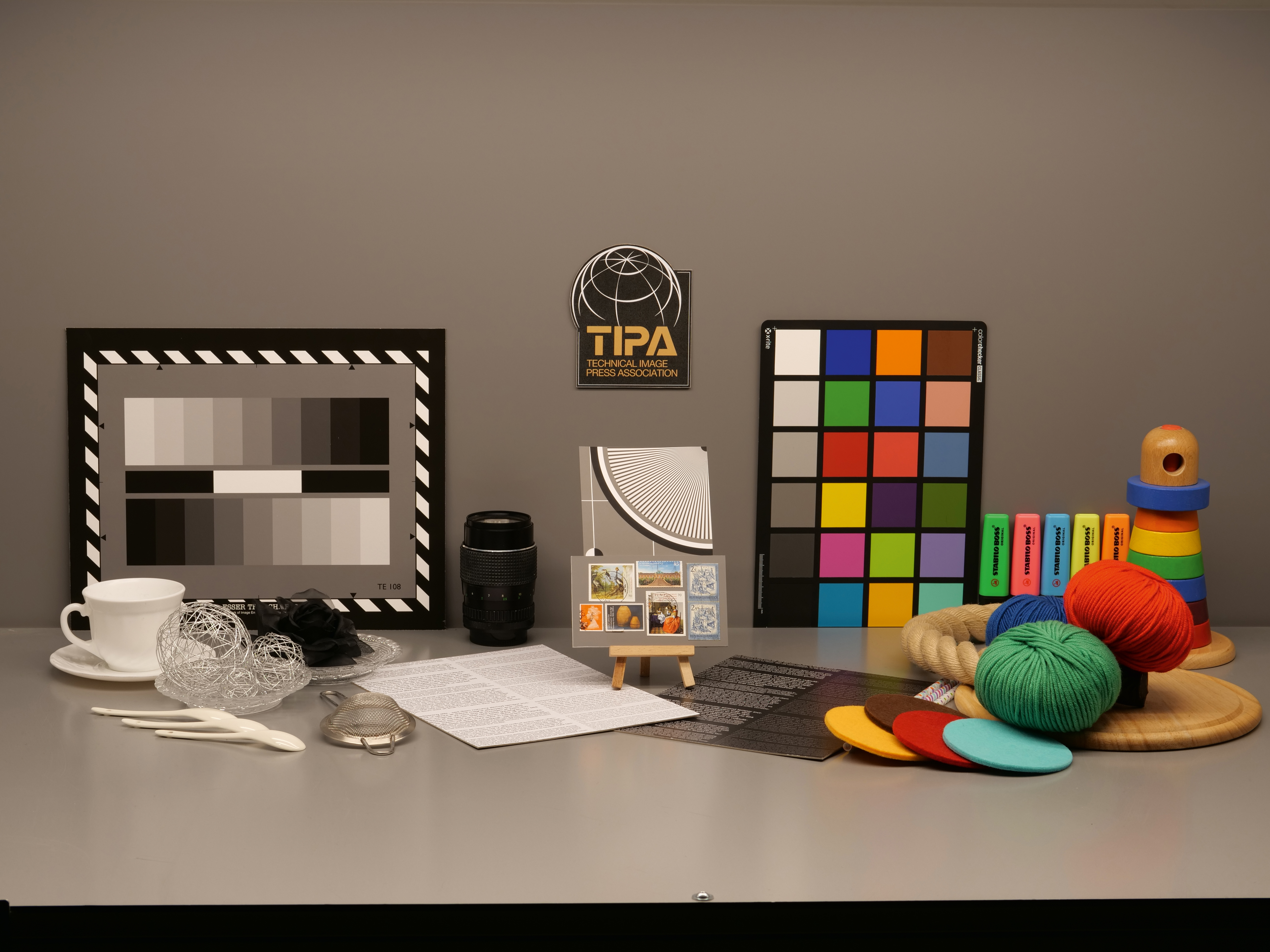Die mit 6.500K (oben) bzw. 2.800K (unten) ausgeleuchtete Testaufnahme wurde von der Panasonic DC-G9 in Kombination mit dem Nocticron 42,5 mm bei Blende 8, ISO 100 und mit automatischem Weißabgleich aufgenommen. Der Fokuspunkt war auf die Mitte des Siemenssterns ausgerichtet